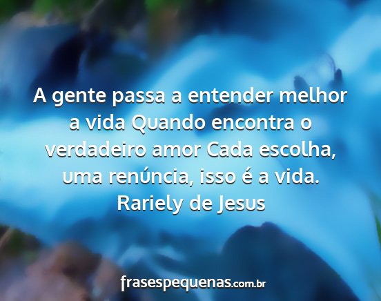 A gente passa a entender melhor a vida Quando encontra o verdadeiro amor Cada escolha, uma renúncia, isso é a vida.Rariely de Jesus