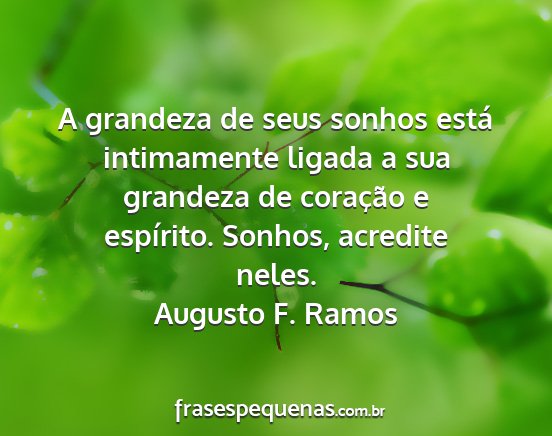 A grandeza de seus sonhos está intimamente ligada a sua grandeza de coração e espírito. Sonhos, acredite neles.Augusto F. Ramos