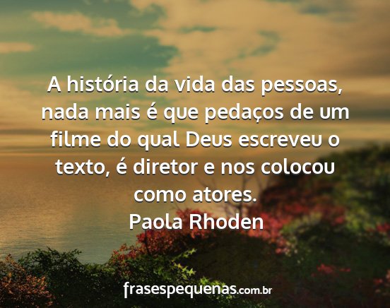A história da vida das pessoas, nada mais é que pedaços de um filme do qual Deus escreveu o texto, é diretor e nos colocou como atores.Paola Rhoden