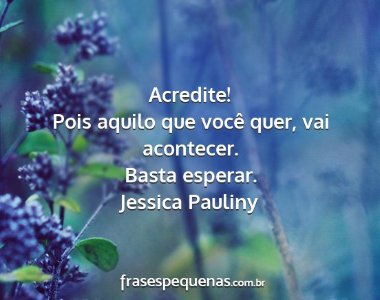 Acredite! Pois aquilo que você quer,...
