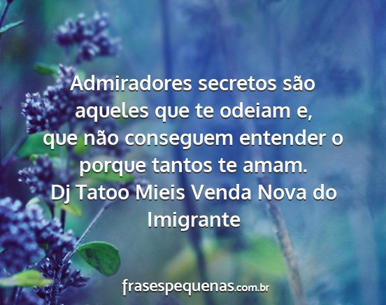 que não conseguem entender o porque tantos te amam.Dj Tatoo Mieis Venda Nova do Imigrante