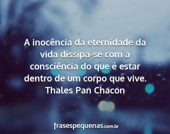 A inocência da eternidade da vida dissipa-se com a consciência do que é estar dentro de um corpo que vive.Thales Pan Chacon
