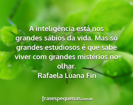 A inteligência está nos grandes sábios da vida. Mas só grandes estudiosos é que sabe viver com grandes mistérios no olhar.Rafaela Luana Fin
