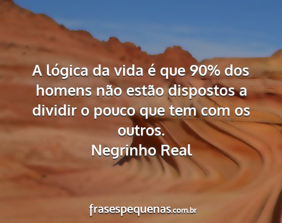 A lógica da vida é que 90% dos homens não estão dispostos a dividir o pouco que tem com os outros.Negrinho Real