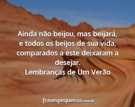 Ainda não beijou, mas beijará, e todos os beijos de sua vida, comparados a este deixaram a desejar.Lembranças de Um Verão