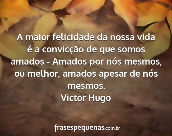 A maior felicidade da nossa vida é a convicção de que somos amados - Amados por nós mesmos, ou melhor, amados apesar de nós mesmos.Victor Hugo