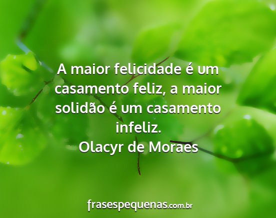 A maior felicidade é um casamento feliz, a maior solidão é um casamento infeliz.