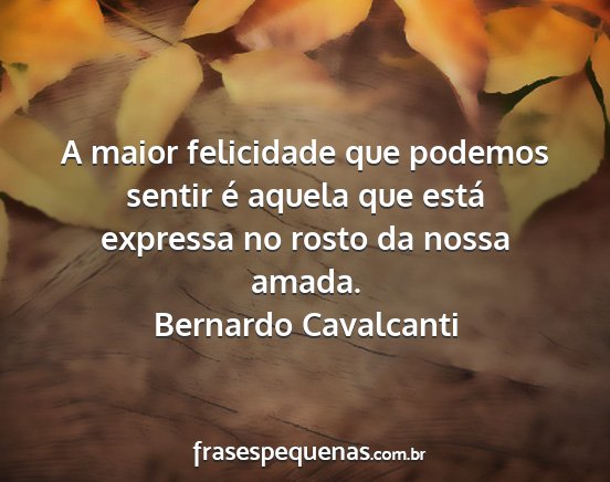 A maior felicidade que podemos sentir é aquela que está expressa no rosto da nossa amada.Bernardo Cavalcanti
