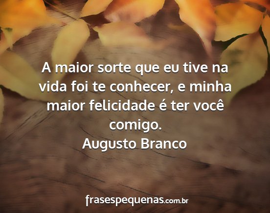 A maior sorte que eu tive na vida foi te conhecer, e minha maior felicidade é ter você comigo.Augusto Branco