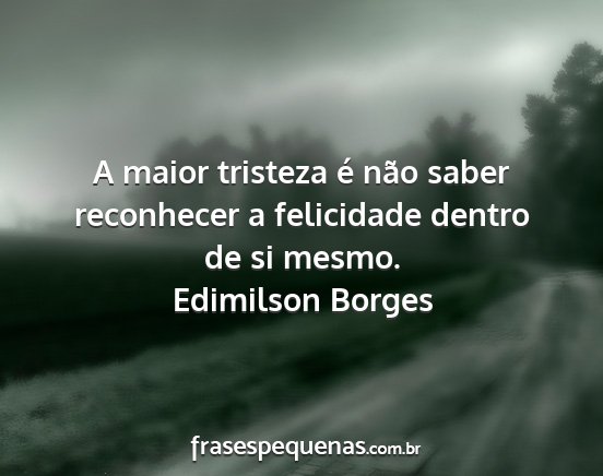 A maior tristeza é não saber reconhecer a felicidade dentro de si mesmo.