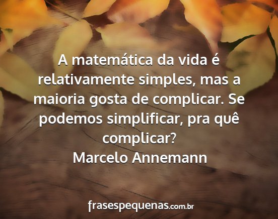A matemática da vida é relativamente simples, mas a maioria gosta de complicar. Se podemos simplificar, pra quê complicar?Marcelo Annemann