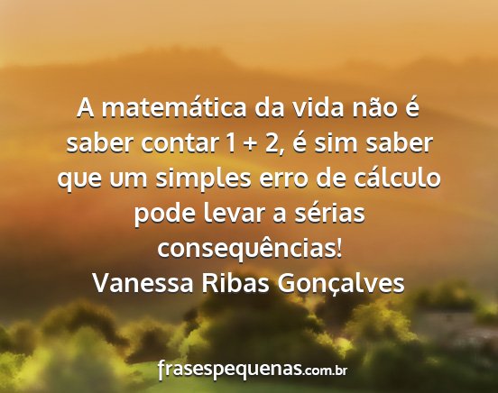 A matemática da vida não é saber contar 1 + 2, é sim saber que um simples erro de cálculo pode levar a sérias consequências!Vanessa Ribas Gonçalves