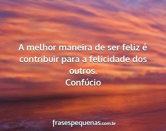 A melhor maneira de ser feliz é contribuir para a felicidade dos outros.