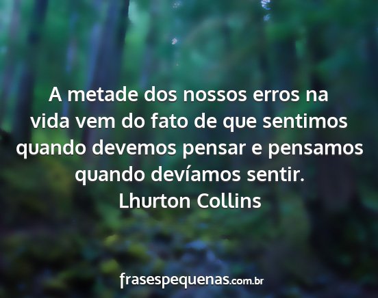 A metade dos nossos erros na vida vem do fato de que sentimos quando devemos pensar e pensamos quando devíamos sentir.Lhurton Collins