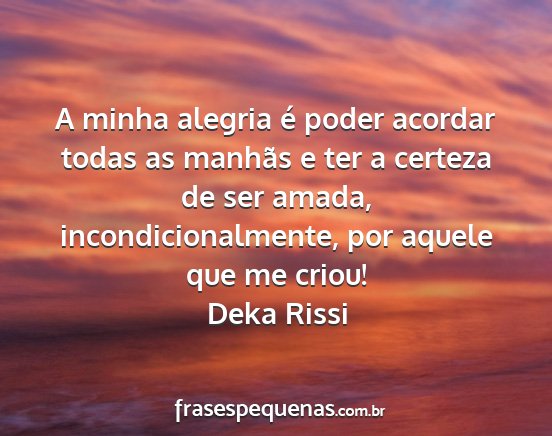 A minha alegria é poder acordar todas as manhãs e ter a certeza de ser amada, incondicionalmente, por aquele que me criou!Deka Rissi
