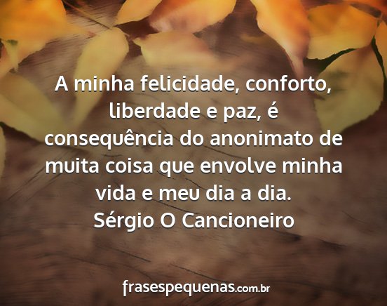 A minha felicidade, conforto, liberdade e paz, é consequência do anonimato de muita coisa que envolve minha vida e meu dia a dia.Sérgio O Cancioneiro