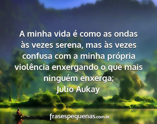 A minha vida é como as ondas às vezes serena, mas às vezes confusa com a minha própria violência enxergando o que mais ninguém enxerga;Julio Aukay