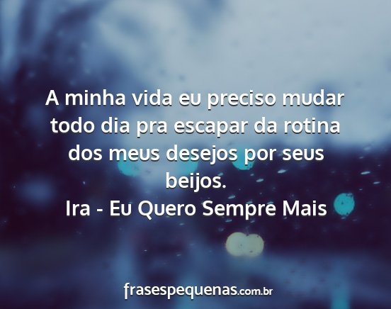 A minha vida eu preciso mudar todo dia pra escapar da rotina dos meus desejos por seus beijos.Ira - Eu Quero Sempre Mais