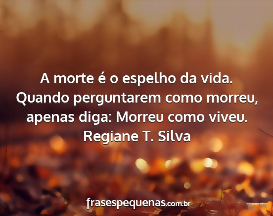 A morte é o espelho da vida. Quando perguntarem como morreu, apenas diga: Morreu como viveu.Regiane T. Silva