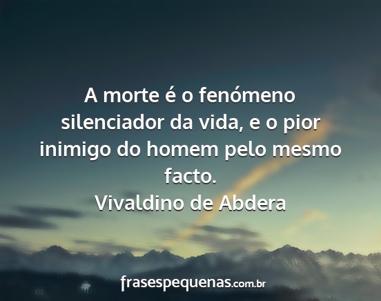 A morte é o fenómeno silenciador da vida, e o pior inimigo do homem pelo mesmo facto.Vivaldino de Abdera