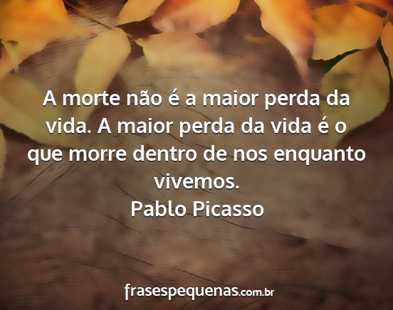 A morte não é a maior perda da vida. A maior perda da vida é o que morre dentro de nos enquanto vivemos.Pablo Picasso