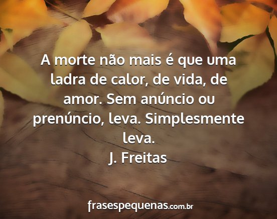 A morte não mais é que uma ladra de calor, de vida, de amor. Sem anúncio ou prenúncio, leva. Simplesmente leva.J. Freitas
