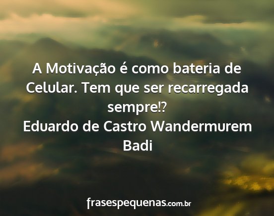A Motivação é como bateria de Celular. Tem que ser recarregada sempre!?Eduardo de Castro Wandermurem Badi