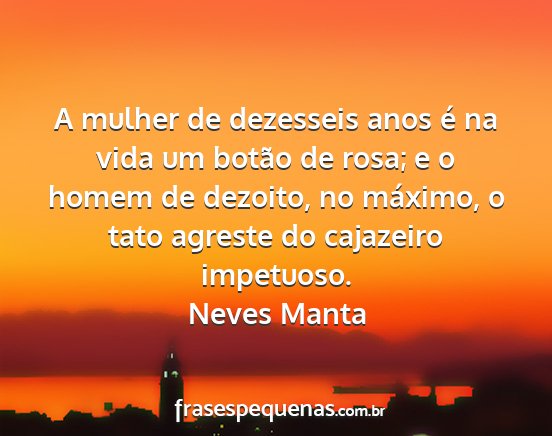 A mulher de dezesseis anos é na vida um botão de rosa; e o homem de dezoito, no máximo, o tato agreste do cajazeiro impetuoso.Neves Manta