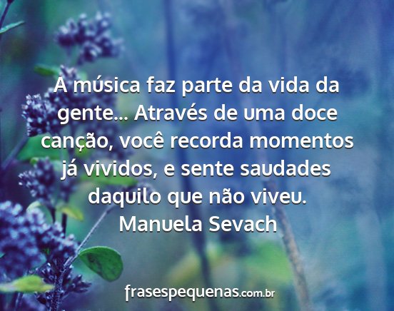 A música faz parte da vida da gente... Através de uma doce canção, você recorda momentos já vividos, e sente saudades daquilo que não viveu.Manuela Sevach