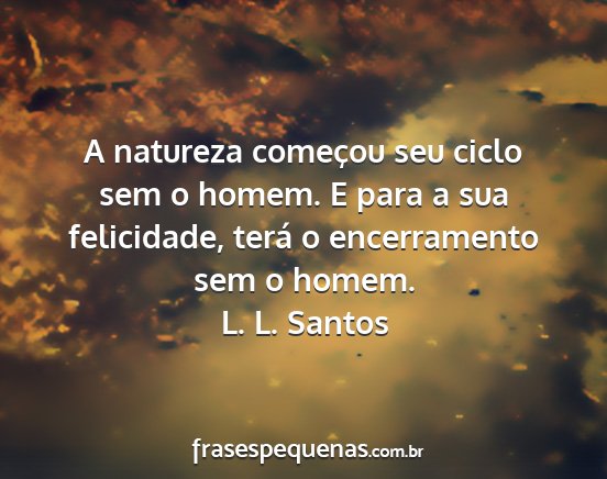 A natureza começou seu ciclo sem o homem. E para a sua felicidade, terá o encerramento sem o homem.L. L. Santos