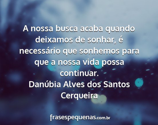 A nossa busca acaba quando deixamos de sonhar, é necessário que sonhemos para que a nossa vida possa continuar.Danúbia Alves dos Santos Cerqueira