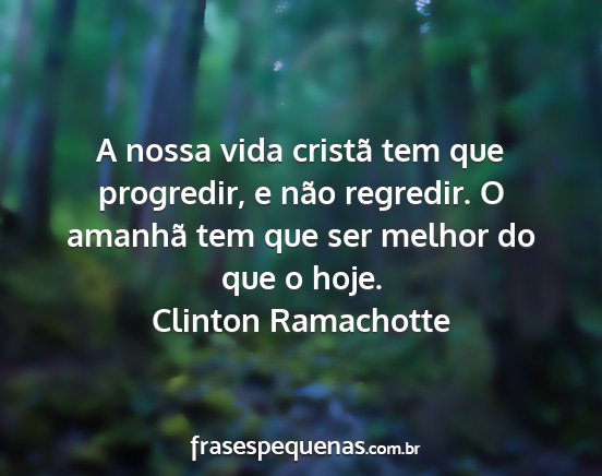 A nossa vida cristã tem que progredir, e não regredir. O amanhã tem que ser melhor do que o hoje.Clinton Ramachotte