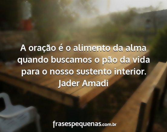 A oração é o alimento da alma quando buscamos o pão da vida para o nosso sustento interior.Jader Amadi