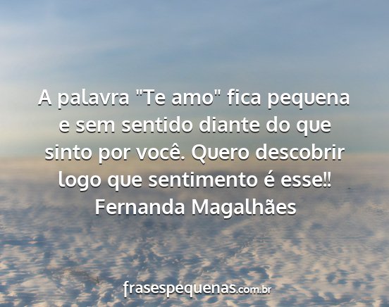 A palavra "Te amo" fica pequena e sem sentido diante do que sinto por você. Quero descobrir logo que sentimento é esse!!Fernanda Magalhães
