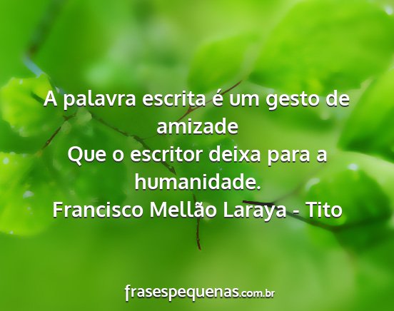 Que o escritor deixa para a humanidade.Francisco Mellão Laraya - Tito