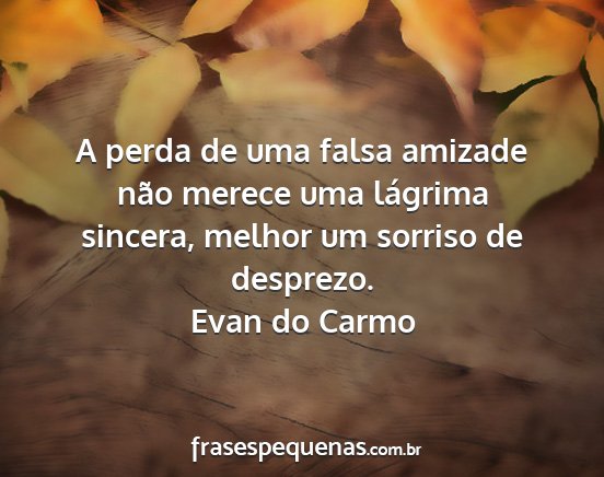 A perda de uma falsa amizade não merece uma lágrima sincera, melhor um sorriso de desprezo.Evan do Carmo