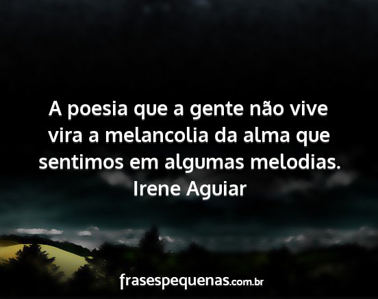 A poesia que a gente não vive vira a melancolia da alma que sentimos em algumas melodias.Irene Aguiar