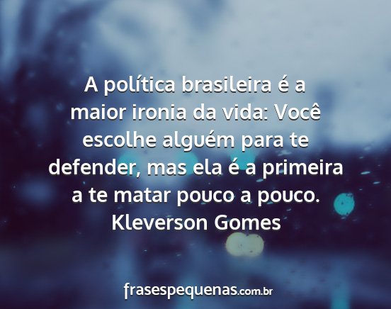 A política brasileira é a maior ironia da vida: Você escolhe alguém para te defender, mas ela é a primeira a te matar pouco a pouco.Kleverson Gomes