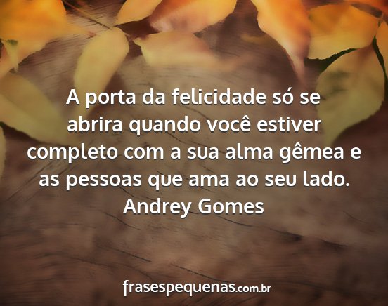 A porta da felicidade só se abrira quando você estiver completo com a sua alma gêmea e as pessoas que ama ao seu lado.Andrey Gomes