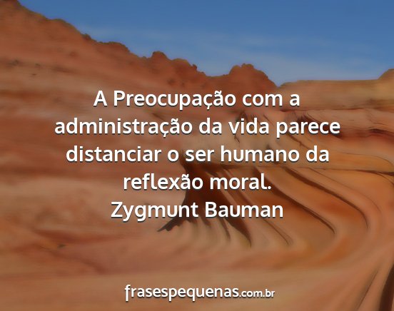 A Preocupação com a administração da vida parece distanciar o ser humano da reflexão moral.Zygmunt Bauman